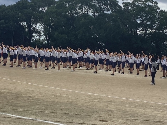 9月24日(木)、本日から体育会の全体練習が始まりました。今日は、入退場の練習、校歌練習、ラジオ体操を行いました。生徒会、ブロック長が声を出しみんなをまとめていました。