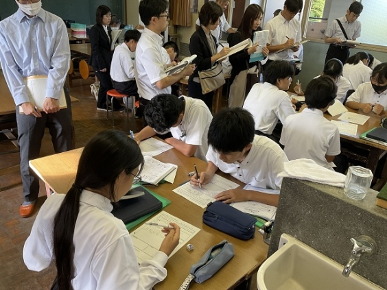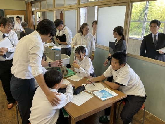 10月24日(金)市内一斉の授業研究会が行われました。本校では、田中先生が1年2組で理科の授業を公開しました。「コインが何でできているかを調べよう」というめあてで、子どもたちはこれまで学んできた知識を使って、調べる方法を考えました。個人で考えた後グループで考えを深めていきました。子どもたちは先生の問いに積極的に答えたり、班で話し合って計画したりするなど意欲的に取り組んでいました。