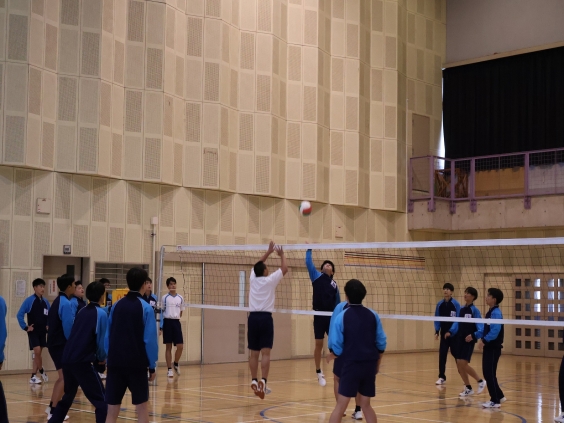 12月23日(火)体育館に近づくと、楽しそうな声が聞こえてきました。中に入ると、3年生がクラスマッチを行っていました。クラス対抗バレーボール大会で、1球ごとに大きな声援が響き、大盛り上がりでした。受験勉強の合間の良いリフレッシュになったのではないでしょうか。