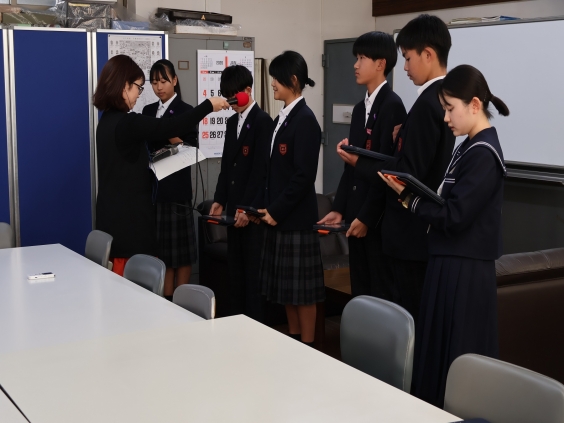 1月14日(水)FМたんとから「教えて!大牟田市}のコーナーの収録に来られました。生徒会のメンバーが甘木中学校の紹介や、今年度取り組んだ学習内容や活動を話しました。マイクを向けられ、緊張した様子の子どもたちでしたが、無事収録を終えることができました。 今回収録した内容は、2月19日(木)10:15〜放送予定です。ぜひお聞きください。