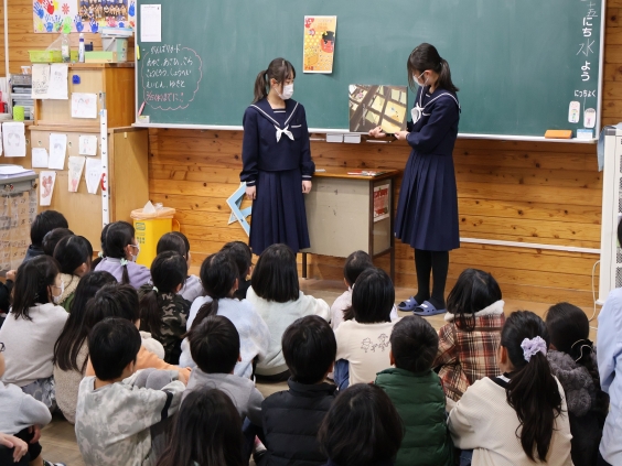 3年生の生徒たちは、この日のために自分たちで絵本を選び、練習を重ねて本番に臨みました。事前練習では、講師の先生に教わった「絵本の持ち方」や「読み方」などを何度も確認。本番では緊張しながらも、小学生に物語を届けようと、一生懸命に読み進める姿が見られました。小学生も、先輩たちの読み聞かせを静かに、熱心に聞いてくれました。終了後、生徒たちからは「緊張したけれど楽しかった」「喜んでもらえてよかった」「しっかり聞いてもらえてうれしかった」といった感想が聞かれ、達成感に溢れた表情が印象的でした。