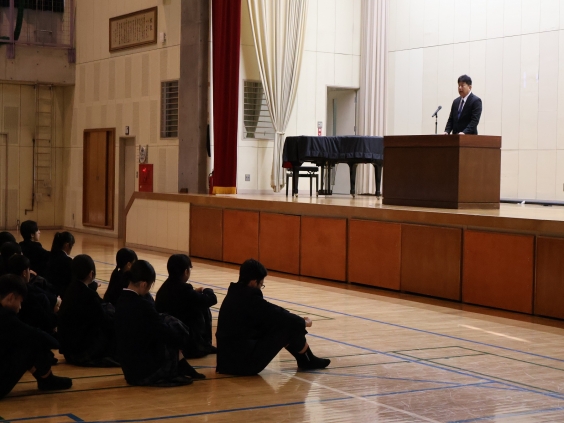 3月24日(火)、修了式を挙行し、各学年の代表生徒に修了証が授与されました。 校長先生からは、合唱コンクールや行事等で「自立(主体的な行動・自己規律・他者への信頼)」を体現した生徒の成長を称える言葉がありました。また、「高い目標達成のために、今日からできる具体的な一歩を」と、新学年に向けた激励が送られました。次回の登校は4月7日(火)の始業式です。笑顔で会いましょう。