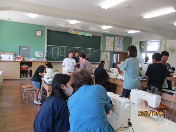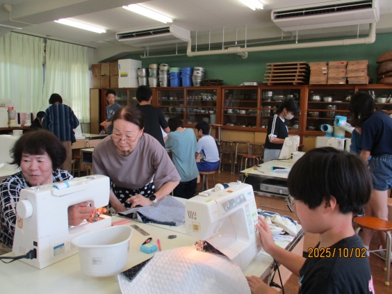 本日、6年生が家庭科でナップサック作りを行いました。地域のミシンボランティアの方や退職校長会の先生、合わせて6名のGTに来ていただき、ミシンの使い方の基本やひも通しの部分の縫い方について丁寧に教えていただきました。おかげ様で後半はミシンに慣れて自分一人でもきれいに縫えるようになりました。あと1時間で仕上げまで来ました。来校くださったGTの先生方、本当にありがとうございました。