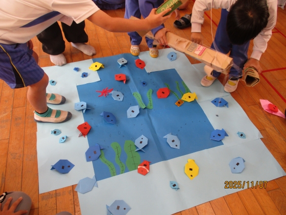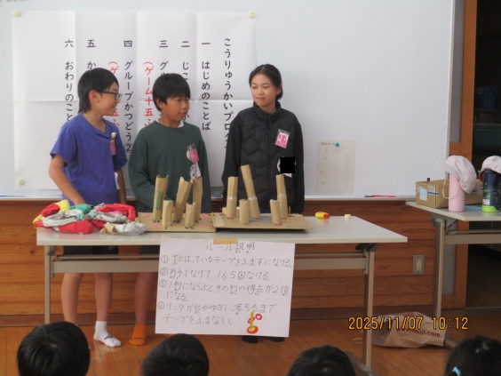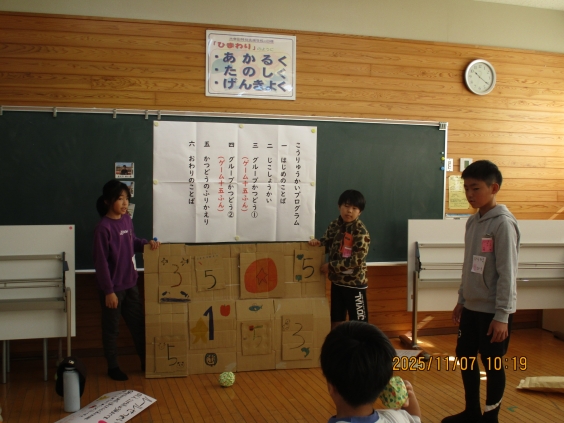 本日、5年生が大牟田特別支援学校へ行き、小学部の友達と交流会を実施しました。本校の5年生が支援学校の友達に楽しんでもらおうと、輪投げやボーリング、魚つり等のゲームを工夫してつくり、やり方を教えたり応援したり怪我をしないように気遣ったりすることができました。帰りに支援学校の先生から「お友達もみんな笑顔で喜んでたよ。楽しいゲームやうれしいプレゼントをたくさんありがとう。」と言ってもらい、また一つ、「がんばってよかった」という成就感が増えた5年生でした。