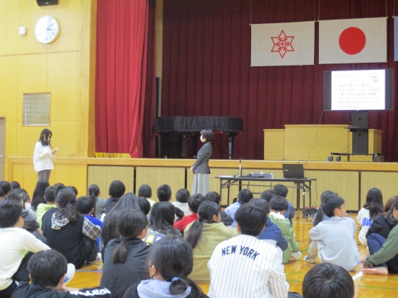 本日、4,5,6年生でNPO法人子どもとメディアから講師をお招きし、スマホやゲームの使い方について考える教室を実施しました。元気な身体のため、心のため、脳の働きのためには「食べる・遊ぶ・寝る」がとても大事であることを分かりやすく教えていただきました。6〜12歳の睡眠は9〜12時間、テレビやゲームの時間は1日に合計2時間以内(成績のためには1時間以内の方がよいそうです)を推奨されました。またゲーム課金や知らない人とのオンラインゲームの怖さについても教えてくださいました。最後にネットやゲームの使い方、生活リズム等は人それぞれで違うので、今日帰ったらおうちの大人の人とぜひ使い方やルールについて話をしてくださいということでした。4,5,6年生の皆さんはもう話しましたか。