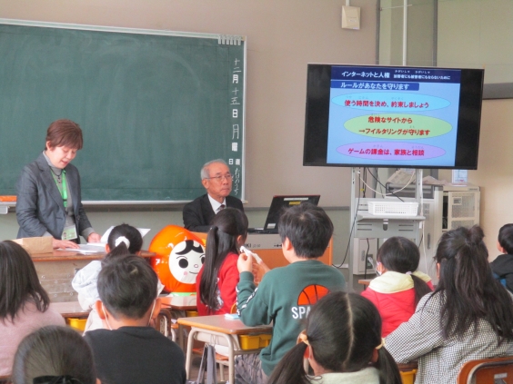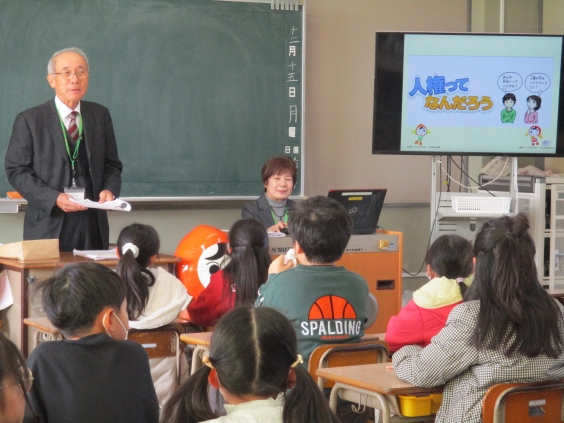本日、人権擁護委員さん達が来校くださり、3年生でスマホ・ケータイ人権教室を実施しました。人権って何だろうという話から始まり、DVDを視聴し、ネットで人権を侵害されている事件が増えているので気を付けようという内容の話をしていただきました。人権を守るために、自分の家の玄関(外側)に貼れないような画像は載せないでくださいと注意がありました。困った時は周りの信頼できる大人に相談しましょう。周りの大人に言えない時は、人権擁護委員へSOSレターでも電話、ネット、LINEでもいいので相談してくださいということでした。