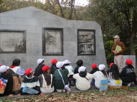 昨日、4年生が社会科「昔から今へと続くまちづくり」の学習で早鐘眼鏡橋と早鐘ため池(跡地)の見学に行きました。本校で少人数指導をしている古池先生より案内してもらいました。早鐘眼鏡橋は1674年日本で最初に造られた水路橋(国指定重要文化財)です。早鐘ため池は今の不知火ゴルフ場の中にありました。雄池と雌池があり25mプール925個分の水を溜めていたそうです。実際に見学して、規模の大きさや橋造りの巧みさを目の当たりにし、何のために造られたのか、どのようにして造られたのか、調べてみたいと学習意欲を高めた4年生でした。帰る途中に馬渡第一公園があったので、記念碑をもとに、強制連行された朝鮮の人が住んでいた馬渡社宅があったことについても学んでいます。