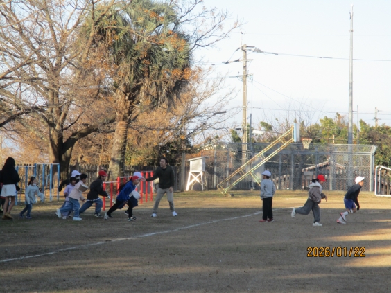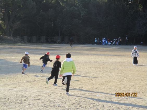 本日は縦割り遊びの日でした。運動場と教室に分かれ、6年生が計画を立てて遊びました。外は「けいどろ」「オオカミさん、今、何時?」室内は「宝探し」「ジェスチャーゲーム」等でした。風が冷たかったですが、低学年児童の中には「まだしたいです」という子らもいて、さすが風の子だなと思いました。たくましいです。