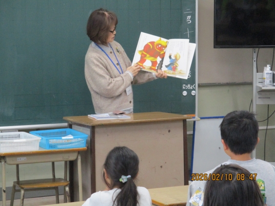 今日は「あまちゃんクラブ」による下学年への読み聞かせの日でした。1年生と3年生で実施しました。日本昔話から『おにはそと ふくはうち』を,雪にちなんだ外国の女の子のお話や動物のお話、木と鳥のお話を読んでいただきました。「あまちゃんクラブ」の方々は子供達の心に残る良書を届けたいという思いで、毎回、学年や季節に合わせて選書して読んでくださっています。感謝の心をもって拝聴してほしいと思います。