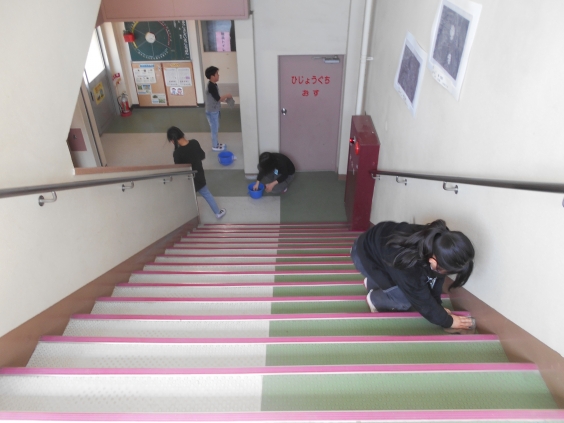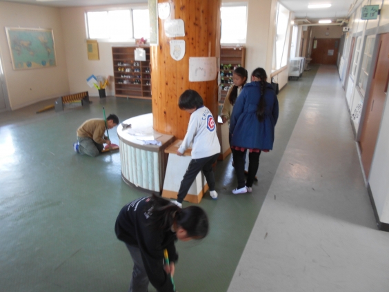 昨日、4年生が5時間目に廊下や階段を隅々まで黙って掃除をしている姿を見かけました。聞くところによると、今年一年間の学校への感謝の気持ちを伝えたい、学校のために何かやりたい、今すぐできるのは掃除だということになり、学校中の廊下や階段に散らばって、掃いたり拭いたりしているとのことでした。4年生、感謝の心をありがとう。頑張ってきれいにしてくれてありがとう。おかげでとても気持ちの良い廊下や階段になりました。