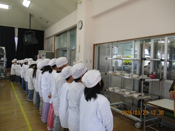 本日は、登校班の振り返りと大掃除を行いました。新リーダーを中心に、あいさつや並び方、集合について振り返り、4月のめあてを決めました。また、大掃除では、自分の引き出しや棚、教室・廊下の隅々など、これまでの感謝をこめてきれいにしました。給食も最後でした。調理員さん達に心をこめてお礼を言って美味しくいただきました。令和7年度もあと1日。最後まで事故や事件に気を付けて元気に登校しましょう。最後の日には見守り隊の方へのあいさつ(お礼)も忘れずに行いましょう。