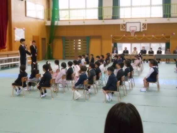 4月10日(金)は、入学式を行いました。 保護者の皆様、6年生、職員が見守る中、音楽に合わせて元気よく入場した1年生。 34名全員が入学式に参加できました。1年生は元気にあいさつすること、自分のことは自分ですること、命を守ることを話した校長先生の話を、姿勢よく静かに聞くことができました。 1年生は6年生に歌や言葉を送ってもらい、少し緊張が和らぎ、にこにこ笑顔になりました。 天の原小学校でお友達とたくさん元気に遊んだりお勉強したりしようね!