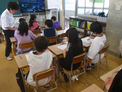 10月7日(火)に4年2組で算数「面積」の授業研究会がありました。L字型の面積を求める学習です。子ども達は、長方形や正方形の面積を求めることはできますが、今回は長方形でも正方形でもありません。L字型を2つに分けると、長方形や正方形になり求めることができるという見通しをもちました。縦に2つに分けて考える子どももいれば、横に2つに分けて考える子どももいます。小グループで考えを説明した後に全体で交流しました。この時、小さな長方形をつけ加えて、大きな長方形にして考える子どももいたので、その考えを全体で確かめました。最後に練習問題を解き定着を図りました。L字型のような形も、分けたりつけ加えたりして長方形や正方形にすると面積を求められることがわかりました。