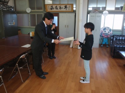 11月4日(火)に第75回社会を明るくする運動作文コンテストで優秀賞に選ばれた6年生の山本さんの表彰が、11月7日(金)に第65回下水道の日(小学生の部)で標語が入選した4年生の井上さんの表彰が校長室で行われました。賞状と賞品が担当の方より渡されました。おめでとうございます。