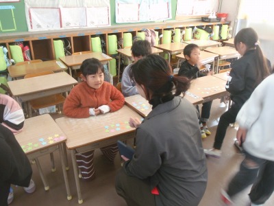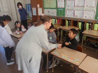 12月5日(金)に1年生がALTのリンダ先生と一緒に外国語活動の学習をしました。今回は、英語を使って買い物をし、リース作りに挑戦をしました。そのために、まず、数字を英語で言う練習をしました。次に、お客さんとお店屋さんに分かれて、買い物の練習をしました。そして、実際に買い物をしリースを作りました。How many?と聞かれ、必要な数を英語で答えることができました。最後にリンダ先生から「Tiny Boppers」の読み聞かせがありました。楽しくお話を聞くことができました。