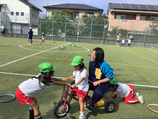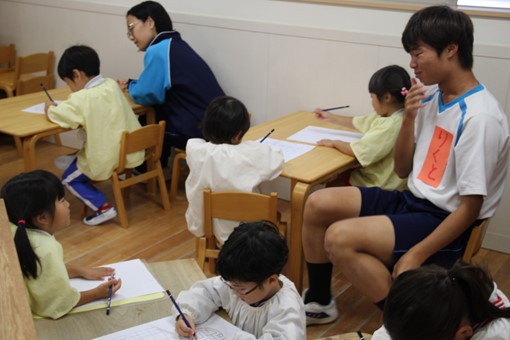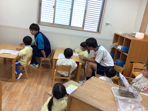 10月23日(木) 3年生総合的な学習の時間で保育実習を行いました。 目的は ・保育に携わる方々の姿にふれ、実際に子どもたちとかかわることで、幼児を理解すると共に、これまで自分を育ててくれた人の気持ちを考える機会とする。 ・社会の一員としての礼儀やマナーの大切さを知る。 です。6個所の施設にお世話になりました。 今回は、みずほ保育園の様子です。