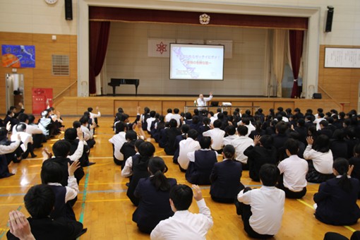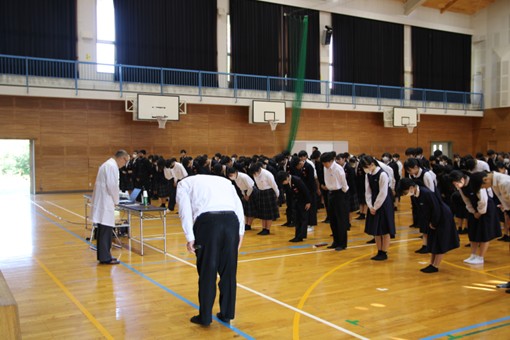 11月14日(金) 期末考査が終わり、4時間目に学校薬剤師の角先生 から薬物乱用防止教室で講話をして頂きました。 健康教育の一環として、心身ともに健康で安全な生活態度や習慣の形成・確立を目指し、薬物に関する正しい知識や薬物乱用による心身への影響及び社会への影響などについての理解を通し、適切な行動選択と意志決定ができる資質と能力を身につけることをねらい行いました。