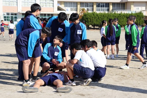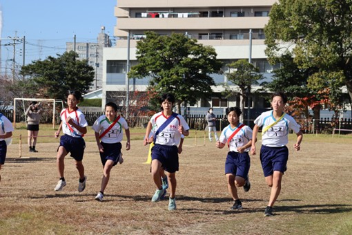 11月29日(土) 校内持久走・駅伝大会が行われました。 各学年男女別の持久走大会と 1年から3年までの7学級対抗で駅伝大会 を行いました。 自己ベストを狙って走る生徒 学級の気持ちを背負って走る生徒 走り終えて倒れこみ、心配した生徒に囲まれる生徒 いろいろなドラマが見られました。