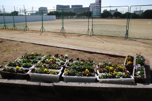 令和9年度の新校再編に向け 今年度より工事が始まります。 既にプールの解体は進み、駐輪場の基礎工事が進んでいます。 現在は南校舎(管理棟)の防水、塗装の工事のため 足場が組まれています。 暫く工事の音などで近隣地域の皆様には ご迷惑おかけしますが、ご理解とご協力 よろしくお願い致します。 PTAと植えたプランターの花も元気に育っています。