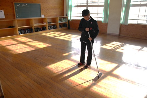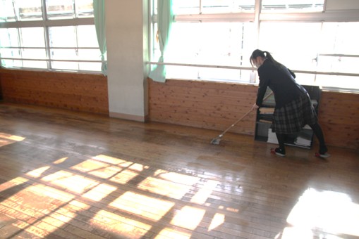 12月23日(火) 教室のワックスがけを行いました。 「時を守り、場を清め、礼を正す」は、「凡事徹底」を意味する言葉で、時間を守る・掃除をする・挨拶・返事をしっかりするなど、日々の些細な行動を真摯に行うことで、自己を磨き、人間関係を構築し、組織を再建するといわれています。 大掃除の後のワックスがけの様子です。勉強で使った教室へ感謝の気持ちをもち取り組んでいました。