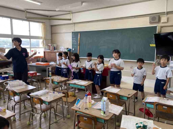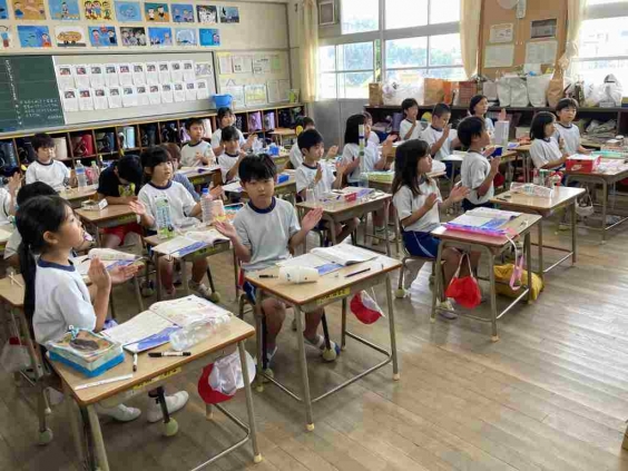 2年生が図工の時間に作った楽器を使って、音楽の学習を楽しみました。子供たちは、曲に合わせて手作り楽器を振ったり叩いたり。複数の楽器を作っていましたので、曲のテンポやリズムに合わせて、演奏しやすい楽器を選び直しながら演奏をしていました。 楽器は家に持って帰りますので、家でも演奏をするのではないかと思います?お家の方も、一緒にノリノリで楽しんでくださいね。
