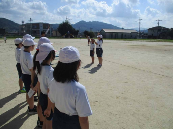 運動会に向けて各学年の練習が始まっています。それと同時に、運動会を陰で支える係も動き始めました。この写真は、進行・記録係の子供たちの様子です。進行をする子供たちは、体育館で動きや言葉を確認した後、運動場に出て練習をしました。自分の言葉を覚え、はっきりした声を出していました。やる気を感じられ嬉しくなりました。 運動会では、競技を必死に行うことは大切ですが、その競技がスムーズに進むよう係の仕事に一生懸命に取り組むことも大切です。運動会での係活動を通して、陰で支える大事さや喜びを感じてほしいです。