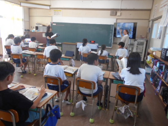 先週の木、金曜日は、子供たちが大好きなリンダ先生が来校され、一緒に英語の学習を行いました。3年生はアルファベットの大文字,4年生は小文字に慣れる学習をしました。リスニングをしたり、ポイントゲームを楽しんだりしながら、少しずつアルファベットを覚えていきました。アルファベットのカードをめくり、隠されている文字を当てるクイズは子供たちに大人気でした。 次にリンダ先生と一緒に学習できるのは12月。2カ月先になります。次の機会もよろしくお願いします。