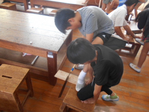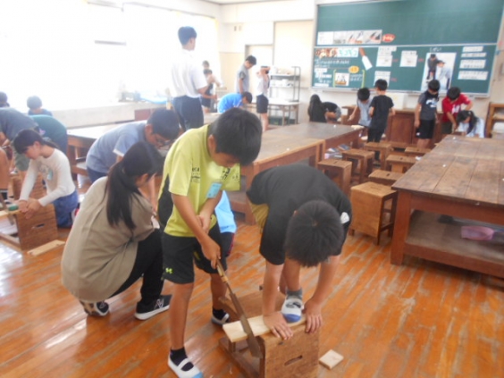 江口先生の授業研修のため、4年1組の大塚先生が図画工作科の授業を見せてくださいました。のこぎりを使用する学習の導入の内容でした。安全に持ち運んだり使ったりすることや詳しい切り方を学んだ後、実際にペアで協力しながら木材を切っていきました。丁寧な段階を踏んだ授業でしたので、江口先生も勉強になったと思います。また、ワクワクするような板書や作業する場の設定、席に着いたり離れたりする動きのメリハリなども参考になったと思います。今回の学びを今後の授業に生かしてほしいです。