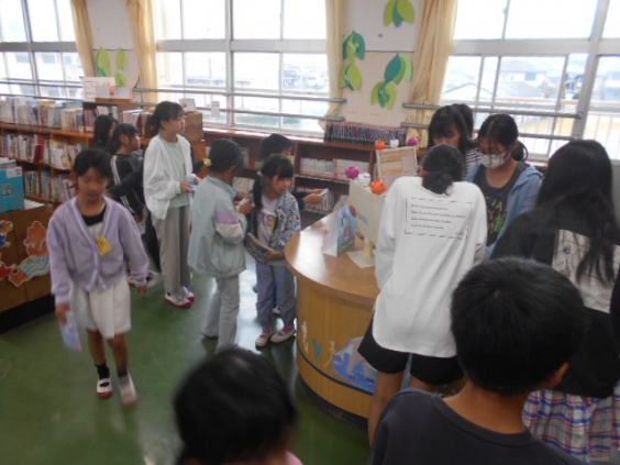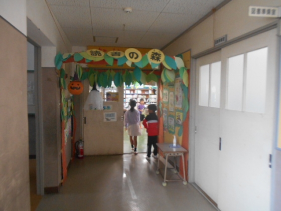 運動会の練習中は、休み時間に図書室に行く時間が取りにくかったのですが、今日は多くの子供たちで賑わっていました。図書室の入り口がハロウィン仕様になったこともあり、子供たちは何だかとても嬉しそうです。 運動会でスポーツの秋を堪能したので、今度は読書の秋にも挑戦し心を豊かにしていってほしいと思います。ずい分気候が良くなりました。短い時間でいいですので、ご家庭でも読書の時間をつくってみませんか?
