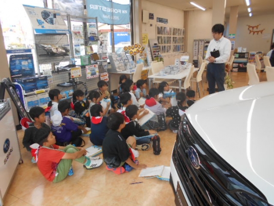 本日、2年生が生活科で町たんけんに行ってきました。A(平原饅頭、やおや)とB(スバル自動車、草木饅頭)の2つのコースに分かれて行き、普段は見ることや聞くことができないことを体験することができました。 スバル自動車では、点検・修理の様子を実際に見せていただき、草木饅頭では、黒田家の歴史や草木饅頭の始まりなどを教えていただきました。 また、多くの質問にも気持ちよく答えていただき、大変意義ある町たんけんになりました。ご協力いただいた方々、本当にありがとうございました