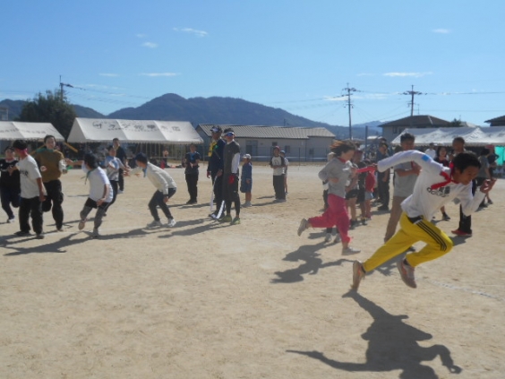 26日(日)は羽山台校区の体育祭。快晴に恵まれ、暑いくらいの秋晴れでした。 子供たちはそれぞれの地域に分かれ、多くの競技に参加しました。子供たちが元気に活動すると活気づき、体育祭が盛り上がりました。競技の内容も学校の運動会とは一味違い、お祭りの雰囲気がありますので、参加した子供たちも大喜びでした。かき氷も振る舞われ、子供たちに大人気でした。 地域の方々が集い、一緒に運動したり笑ったりする様子がとてもいいなと感じました。羽山台校区みんなで、スポーツの秋を堪能した一日でした。