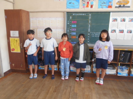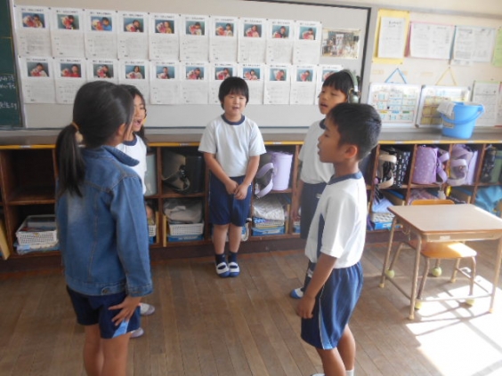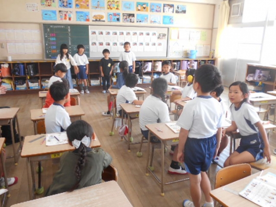 2年生の音楽で「あのね、のねずみは」という歌を学習します。この学習では、歌詞の内容を考えながら歌い方を工夫して表現していきます。子供たちは、歌詞に登場する動物や虫の様子を考えながら、「優しい感じで歌おう。」「ここではこんな振りを付けようよ。」とグループで話し合っていました。練習した後は、みんなの前で発表し、お互いの良さを見つけ合っていました。どのグループも、自分たちの工夫が認められて嬉しそうでした。