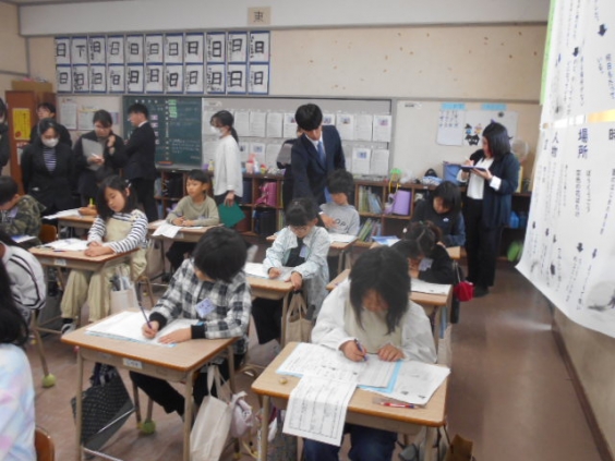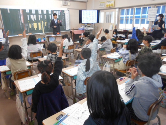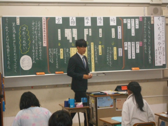 江口先生が3回目の初任者授業研修を行いました。授業は国語科の「ちいちゃんのかげおくり」です。戦争のお話ですので、子供たちにどのように学ばせていくかを同学年の先生と話し合いながら、単元を進めていきました。公開した授業は、ちいちゃんが登場しない第5場面がなぜあるのかについて考える内容でした。子供たちは場面を比べながら読むことで、「第5場面は平和が続くことへの願いが込められている大切な場面だからある」と導き出しました。江口先生も、この授業を通して教材研究や構造的な板書の大切さをしっかり感じられたと思います。これからも頑張ってください。