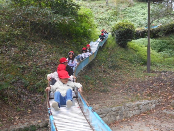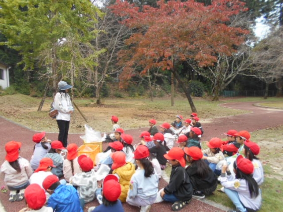 1年生が蛇ヶ谷公園に行き、秋見つけをしました。今年もいつまでも暑く、深まりゆく秋の気配を感じられませんでしたが、公園内の木々は赤や黄色に色づき、子供たちは「わあ、きれい。」と喜んでいました。どんぐりや木の実もたくさん見つけていました。 お弁当の後は、遊具や長いローラー滑り台で遊びました。落ち葉がある広い公園を走り周り、みんな秋を満喫していました。 保護者の皆様には、朝からお弁当の準備をしていただきありがとうございました。おかげで、楽しい秋見つけとなりました。