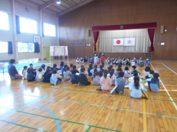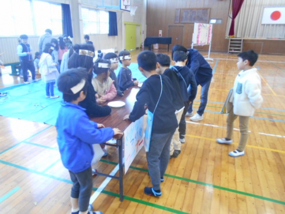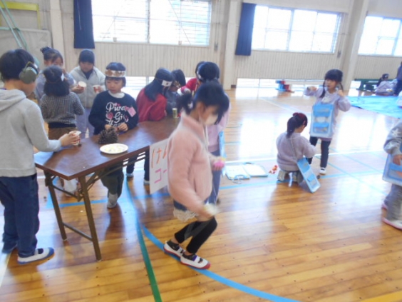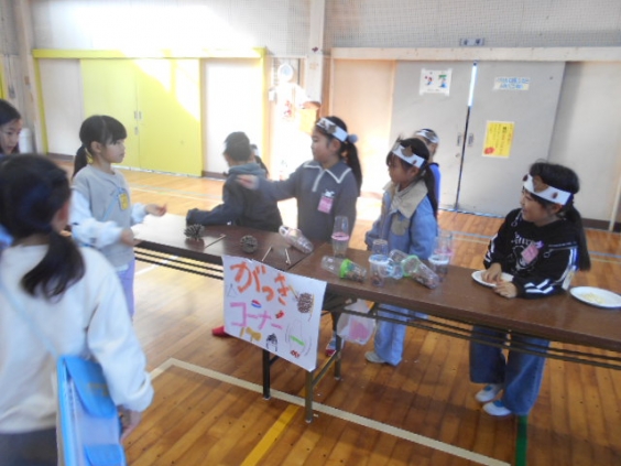 「秋みつけ」で手に入れた葉っぱやどんぐりなどを使って、1年生が楽しく遊べるおもちゃを作りました。楽器やけん玉、迷路や魚つりなどのコーナーを1年生がお世話し、招待した2年生に楽しく遊んでもらいました。全体の会も1年生が上手に進めることができました。 4月に入学した1年生が大きく成長した姿を見せてくれ、とても嬉しく感じました。2年生まで4ヶ月を切りました。更に成長していってほしいです。