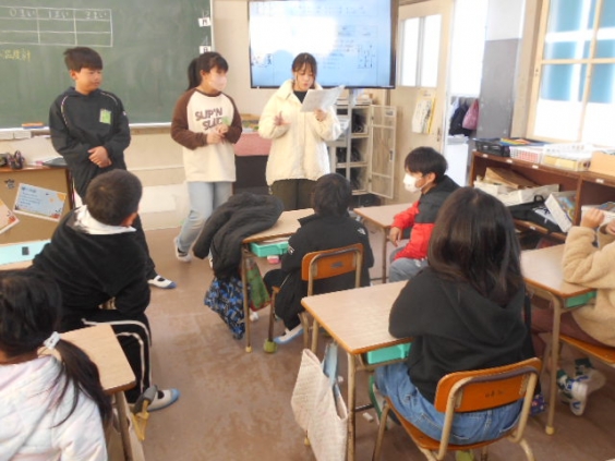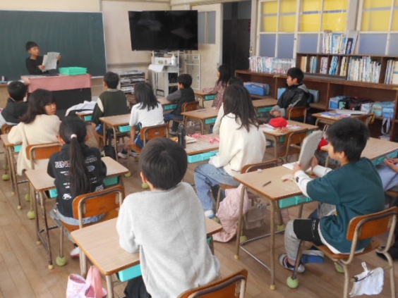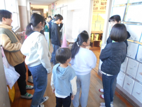 12日(金)の「羽山っ子きずな集会」に向けて、縦割りグループで集合し、ルール説明とチャレンジするゲームの役割分担を行いました。1つの教室に2グループ集まっているのでルール説明は一緒に行い、その後グループごとに分かれ誰がどのゲームを行うかを決めていきました。始めは遠慮していた子供たちも、後半はどんどん手が挙がりゲームの分担を決めることができました。嬉しかったのは、休んでいる友達のことも考えて話合いが進んでいったことです。早速「きずな」を感じることができました。