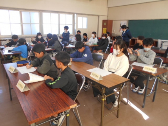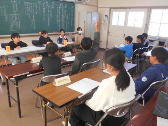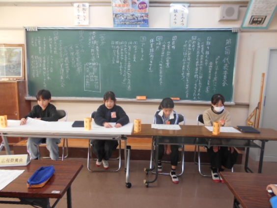 12月22日(月)に行われる6年生の親睦バレーボール大会に向けて、代表委員会が開かれました。6年生にエールを送る内容ですので、司会は5年生が行いました。落ち着いて進めていましたので、「ずい分頼りになるな。」と頼もしく感じました。 集合しての応援練習は時間的に難しいので、応援動画をタブレットに送り、それを活用して各学級で練習します。応援のかけ声や動きは運動会で経験していますので、子供たちもイメージしやすいと思います。みんなの気持ちが届くといいですね。