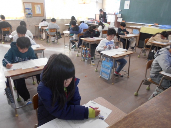 12月11日(木)、全校一斉に学力調査を行い、国語科と算数科の問題に挑戦しました。いつもの単元テストとは違い、後半になると読み応えのある問題が出題されます。解答も記述式ですので、子供たちは時間も考えながら一生懸命に書き込んでいました。 学力検査の結果は年明けに分かります。一人一人の詳しい結果が戻ってきますので、自分の苦手を知り、そこを克服できるよう頑張ってほしいです。学校でも分析し、今後の子供たちの学力向上に活かしていきたいと思います。