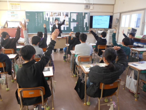 5年生の国語科では、やなせたかしの生涯を学ぶことを通して、その人の考え方や生き方を学んだり、伝記を読むよさに気付き読書の幅を広げたりしていきます。5年2組の子供たちは、たくさん読んだ伝記の中から心に残った名言を決めました。それを基に授業の中で交流し合い、伝記を読むと「新たな考え方や生き方を知ることができる」「これからの生き方のヒントになる」等を見つけていきました。 来週から冬休みが始まります。せっかく学んだ読み方ですので、伝記に触れ自分の考え方や生き方を見つめてほしいです。