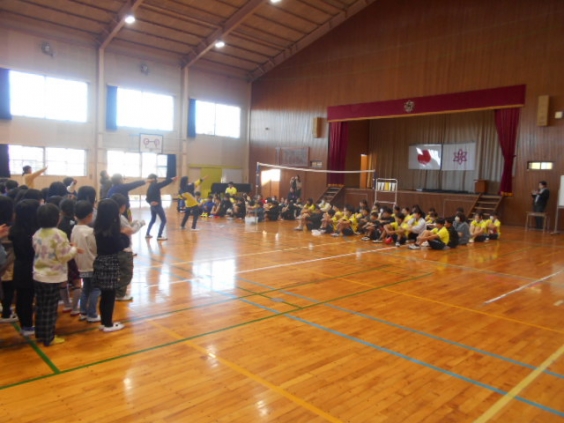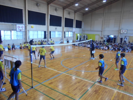 本日、平原小体育館で6年生の中学校区親睦球技大会が行われます。6年生に頑張ってもらおうと、朝の時間に壮行会を開きました。5年生が中心となり、1〜5年生全員で大きな声と拍手でエールをおくりました。その後、6年生による2試合のデモンストレーションが行われました。大きな声援の中、6年生が少し緊張しながらも全力でプレーをしていました。 午後からはいよいよ本番です。1〜5年の応援を胸に悔いのない試合をしてほしいです。さあ、頑張れ6年生!