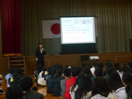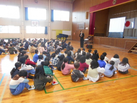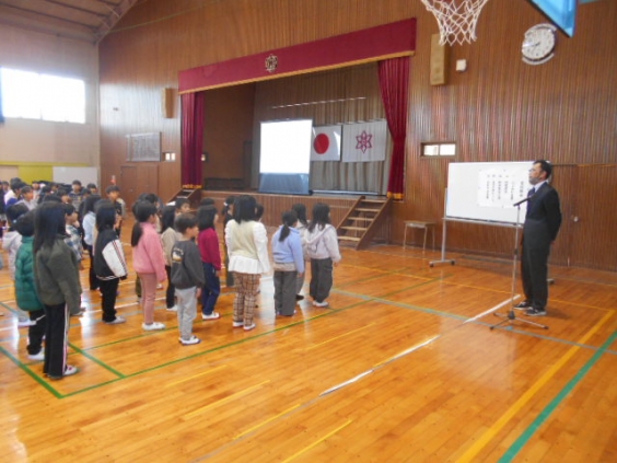 後期後半開始の全校朝会では、校長先生から「目標をもつことの大切さ」と「1月17日のユネスコスクールの日」についてのお話がありました。久しぶりに登校した子供たちでしたが、真剣に話を聞いていました。