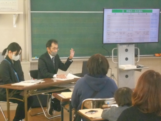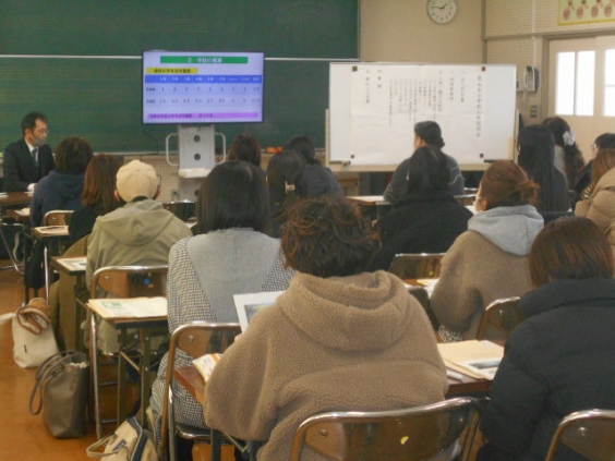 1月22日(木)、令和8年度に入学されるお子様の保護者の方を対象に、入学説明会を行いました。学校からは、学校生活や校費、入学前の準備などについて説明しました。民生委員さんにもお出でいただき、活動の詳しい説明や子どもの居場所についてのお知らせがありました。お子さんが多くの人から見守られていることや、今後は地域の中でも育っていくことを実感されたのではないかと思います。