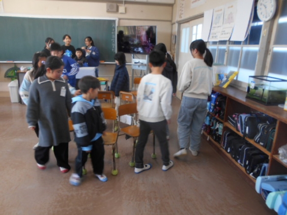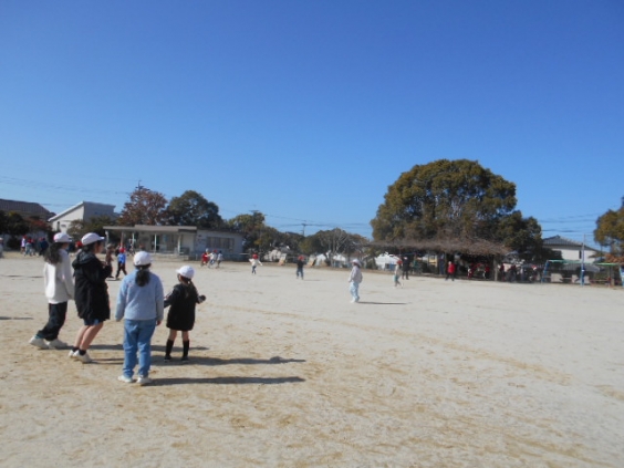 本年度最後の縦割り遊びを行いました。この時期になると、何にでも「最後の」が付き寂しい限りです。室内ではイス取りゲームやフルーツバスケットなどが行われ、楽しそうな笑い声が聞こえてきました。運動場ではケイドロ、陰ふみ鬼、だるまさんが転んだなどで思いっきり体を動かしていました。外遊びにはぴったりの穏やかな陽気でした。
