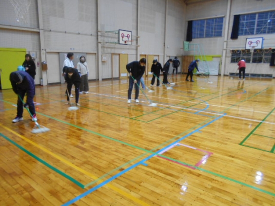 3月6日(金)の放課後、羽山台小の体育館をサークルや部活で使用している団体の皆さんが、掃除とワックスがけをしてくださいました。まず、18時から大牟田高校吹奏楽部の皆さんが、日頃の掃除で行き届かない所まできれいにしてくれました。その後、各団体の代表の皆さんがワックスをかけてくださいました。丁寧に作業をしてくださったので、体育館が見違えるようにピカピカになりました。
