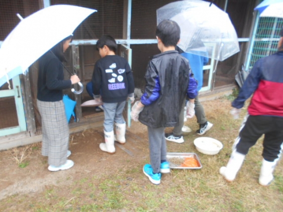 羽山台小にやって来て、約1年が過ぎるまめちゃん。今まで中心になって飼育をしてくれていた4年生から、来年度4年生になる3年生へ引継ぎをしています。小さなまめちゃんですが大切な命があります。何もしゃべりませんがしっかり生きています。その命を守るために、4年生がお世話の仕方をしっかり教えてくれました。3年生も、晴れの日、雨の日関係なく、飼育の仕事をきちんとやり遂げています。まめちゃんにも、子供たちの優しさが伝わることでしょう。