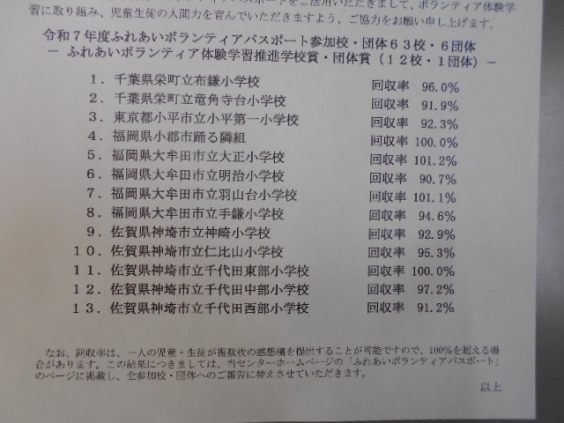 先日、ふれあいボランティア活動の感想文で「小学生賞」に輝いた児童の紹介をしました。今回は学校全体に対する「学校賞」をいただきました。子供たちが自分にできる仕事を見つけ、ボランティア精神で動けた証ですね。 みんなが身の回りを見渡し、少しでいいので出来ることに自主的に取り組むと、多くの人たちが笑顔になれます。その気持ちを忘れずにもち、進んで動ける羽山っ子でいてほしいです。