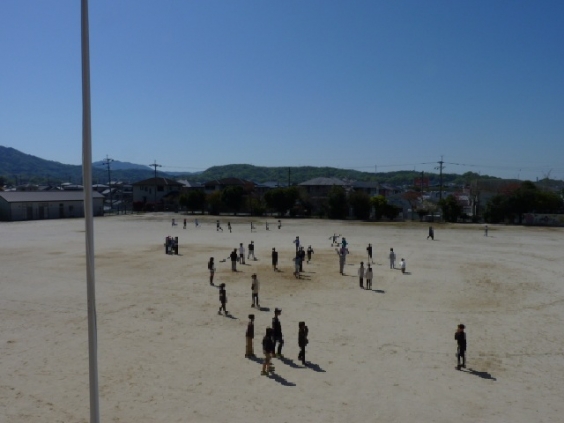 久しぶりに友達と仲良く遊ぶ元気な光景が、校庭いっぱいに広がっています。