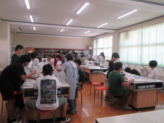本日、ミシンボランティアの先生方にご来校いただき、6年生は、個別に縫い方の指導を受けながらトートバックを製作しました。ミシンの使い始めの合言葉「針刺し、バッタン、返し縫い」を守って、子供たちは、一生懸命製作に取り組んでいました。
