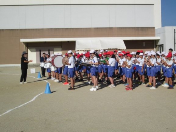 駛馬小学校では、10月26日に運動会を実施します。本日1校時に、運動会に向けての心構え、めあての確認や基本的な行動様式の練習をした後、5.6年生の鼓笛の演奏に合わせて、校歌を大きな声で歌いました。ひとつひとつの行動をしっかり覚え、きびきびと行動し、返事やかけ声を全力で出して頑張っていました。