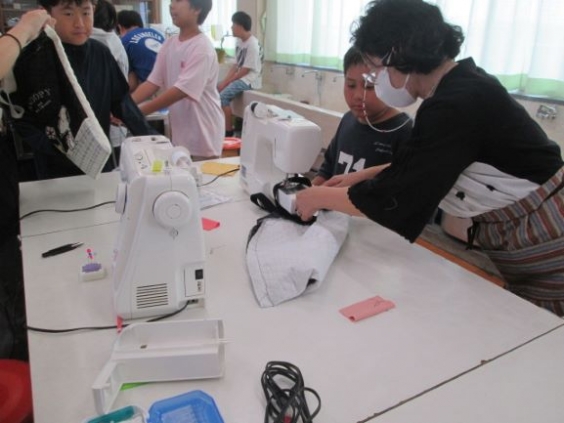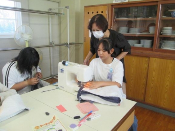 本日、ミシンボランティアの先生方にご来校いただき、6年生は、入れたいものの幅に合わせ、まちを作ったり、持ち手を縫いつけたりして、トートバック製作の続きをしました。完成したときは「できた」と喜びの声と共に作品を嬉しそうに見せてくれました。これからも、ミシンの使い始めの合言葉「針刺し、バッタン、返し縫い」を守ってミシンを使い、学習したことを生活に生かしてほしいと思います。